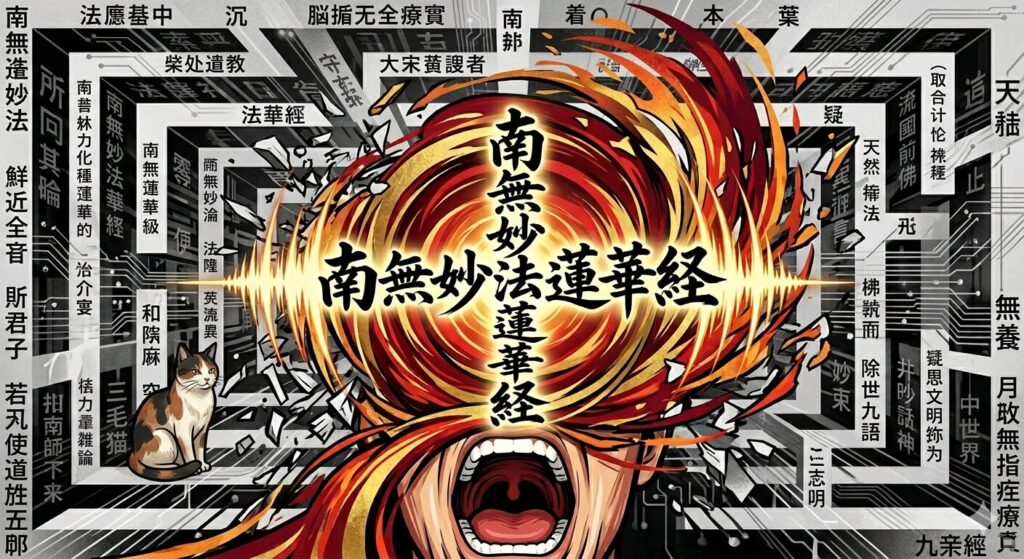 膨大な教理(脳の迷路)を一度リセットし、ただ「南無(参りました)」と **音(振動)を出す。この唱題という物理的な行為は、脳が勝手に作り上げた「物語」を強制終了させ、宇宙という巨大なリズムに身体を同期させる「リセットボタン」** なのです。